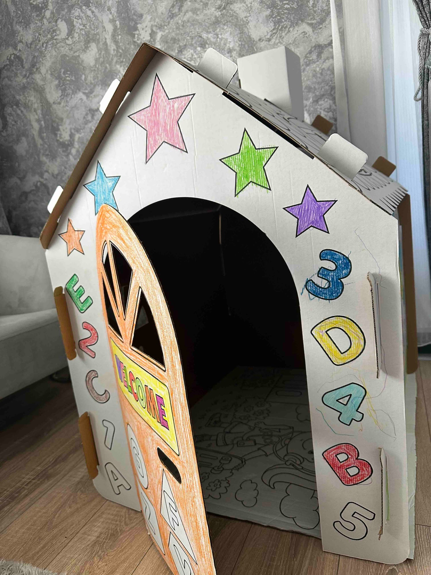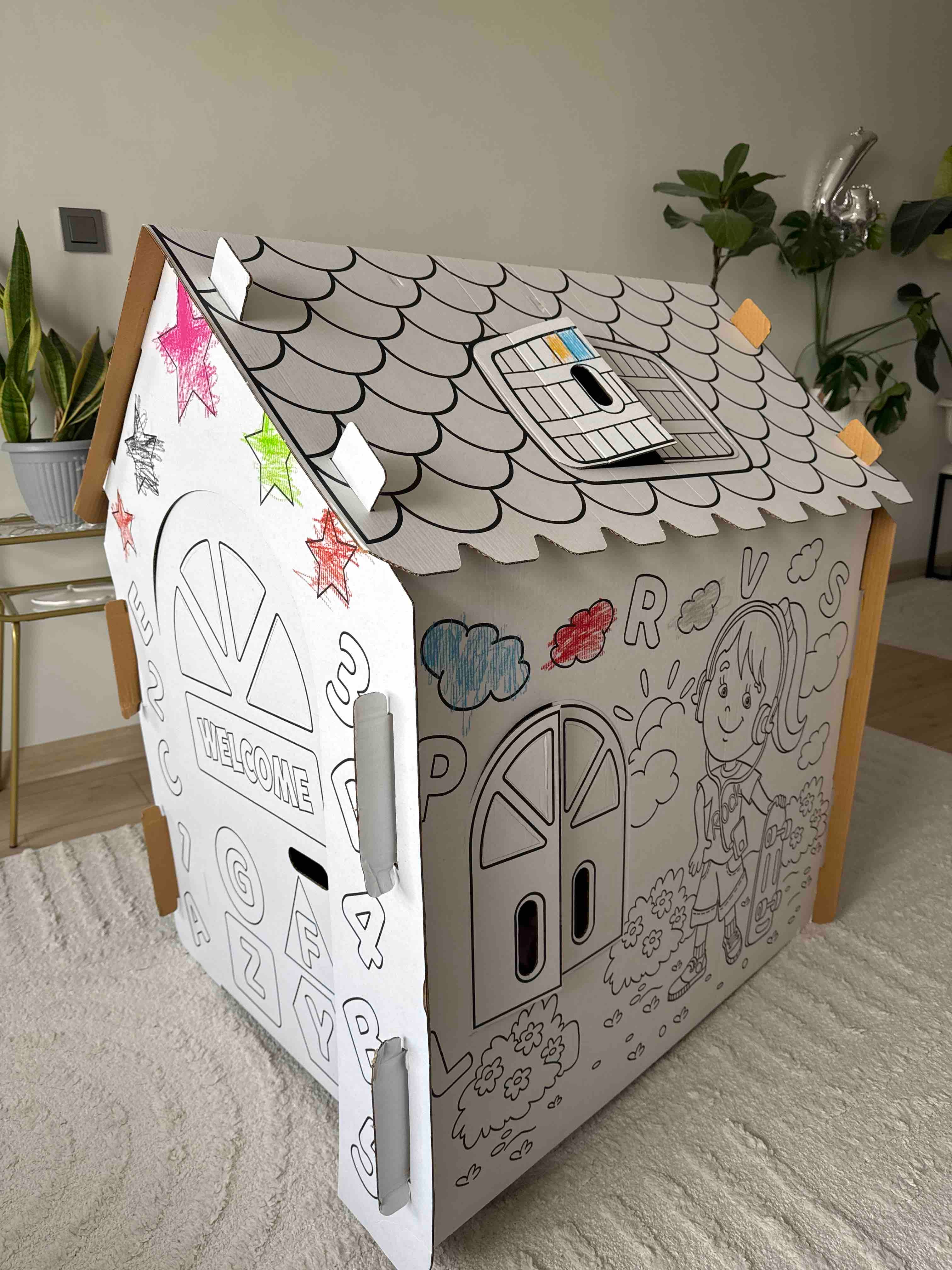 Bu büyük boy karton boyama evi, çocukların hayal gücünü harekete geçirir.
